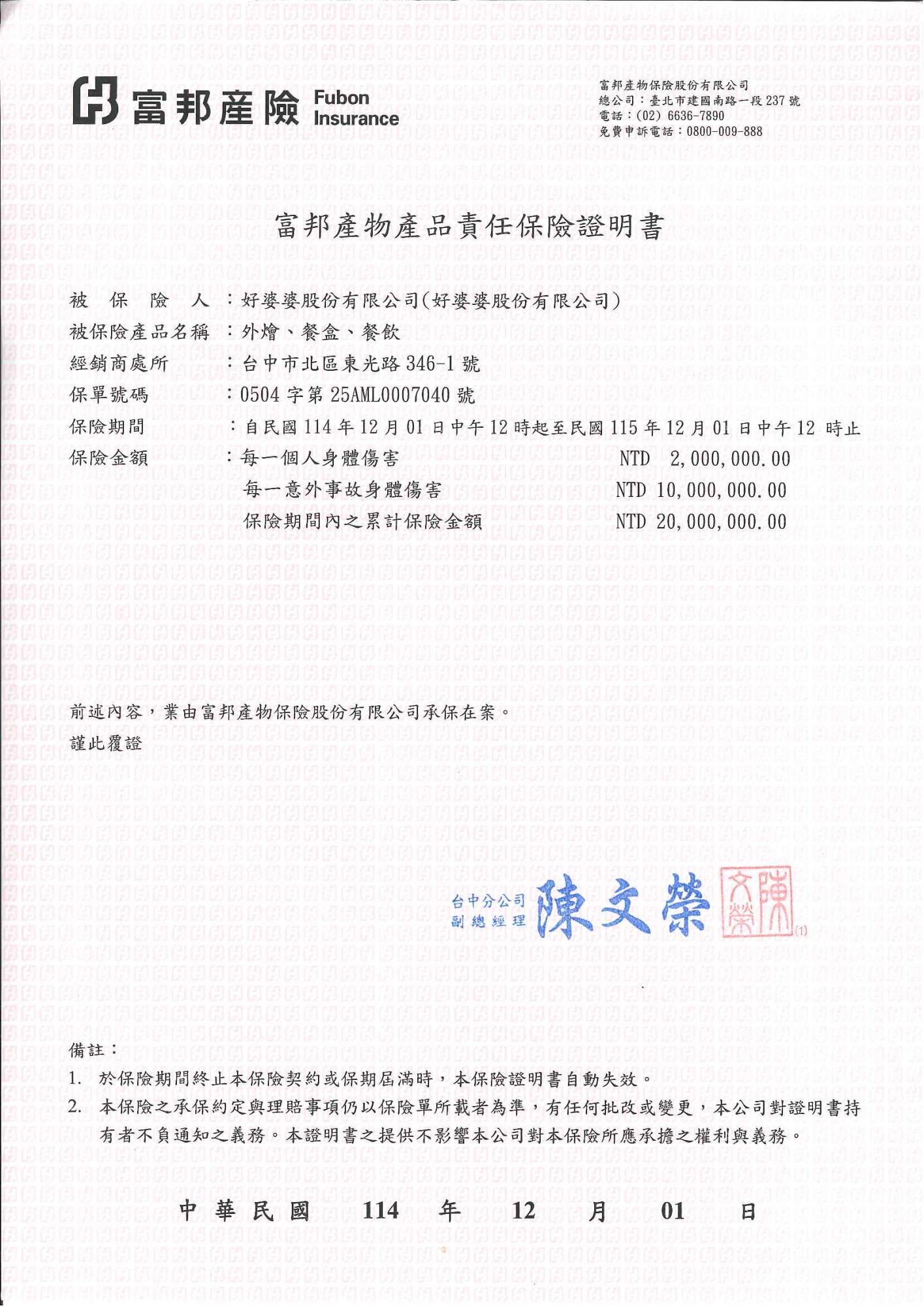 多年以來,好婆婆一直秉持著服務的精神,盡心盡力的照顧每一個客人,無論是風和日麗、颳風下雨、過年過節、甚至颱風天,全年無休,為的是讓每個客人無時無刻在需要的時候,都能得到我們的照顧,在此由衷的感謝好婆婆全體所有員工們:感謝你們任勞任怨真心的為客人付出;才有今日的好婆婆!